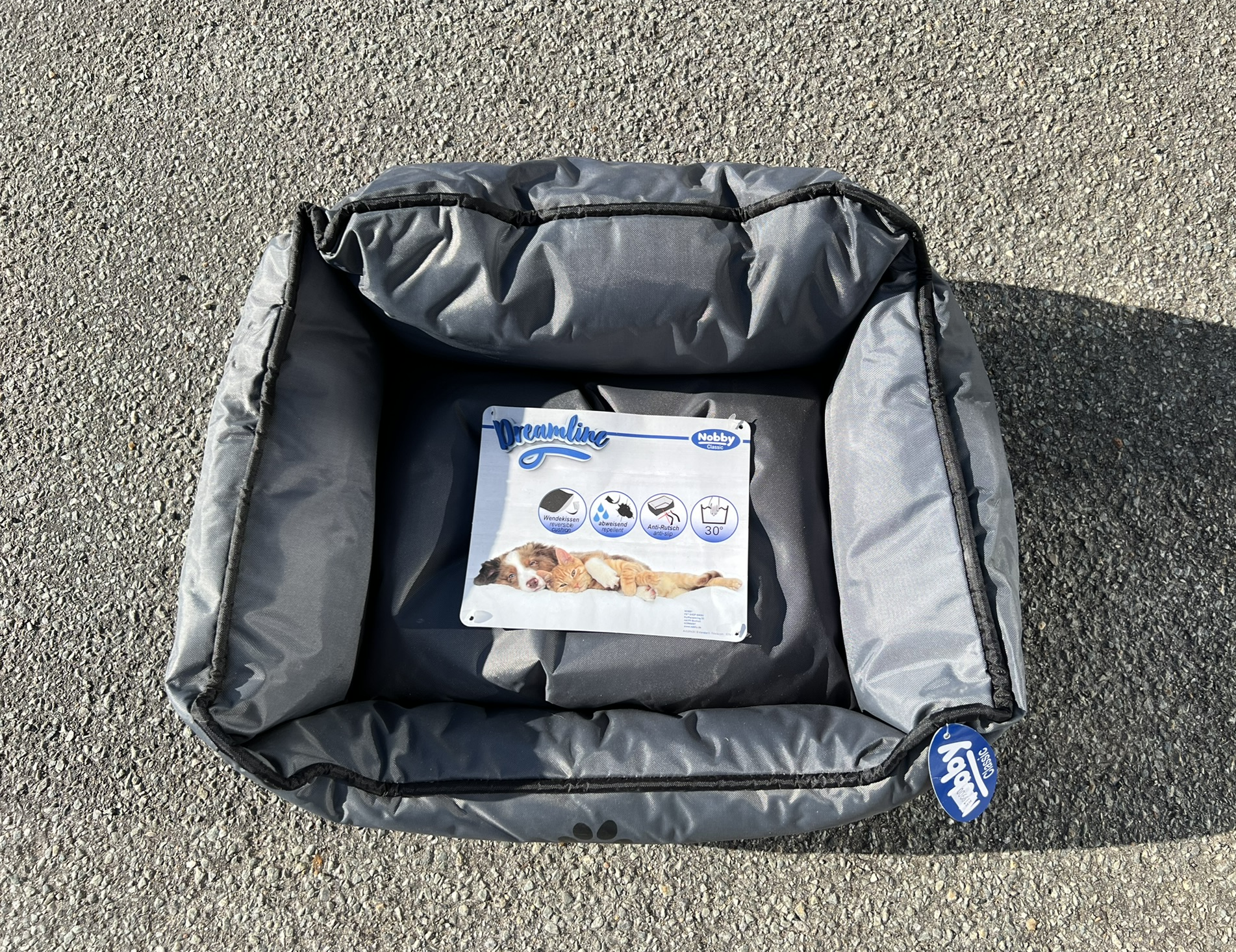 Kurven er vandafvisende, og bunden er skridsikker. Vaskes ved 30 grader.