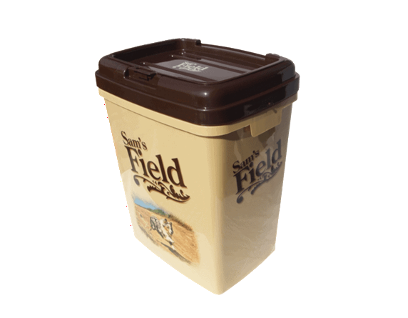 Materiale: Hård plast med logo påtrykt – er godkendt til opbevaring af tørfoder.