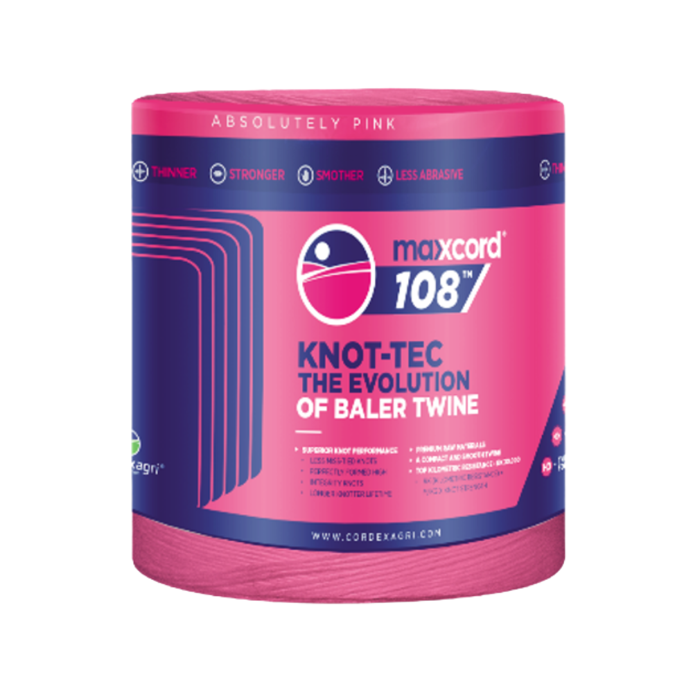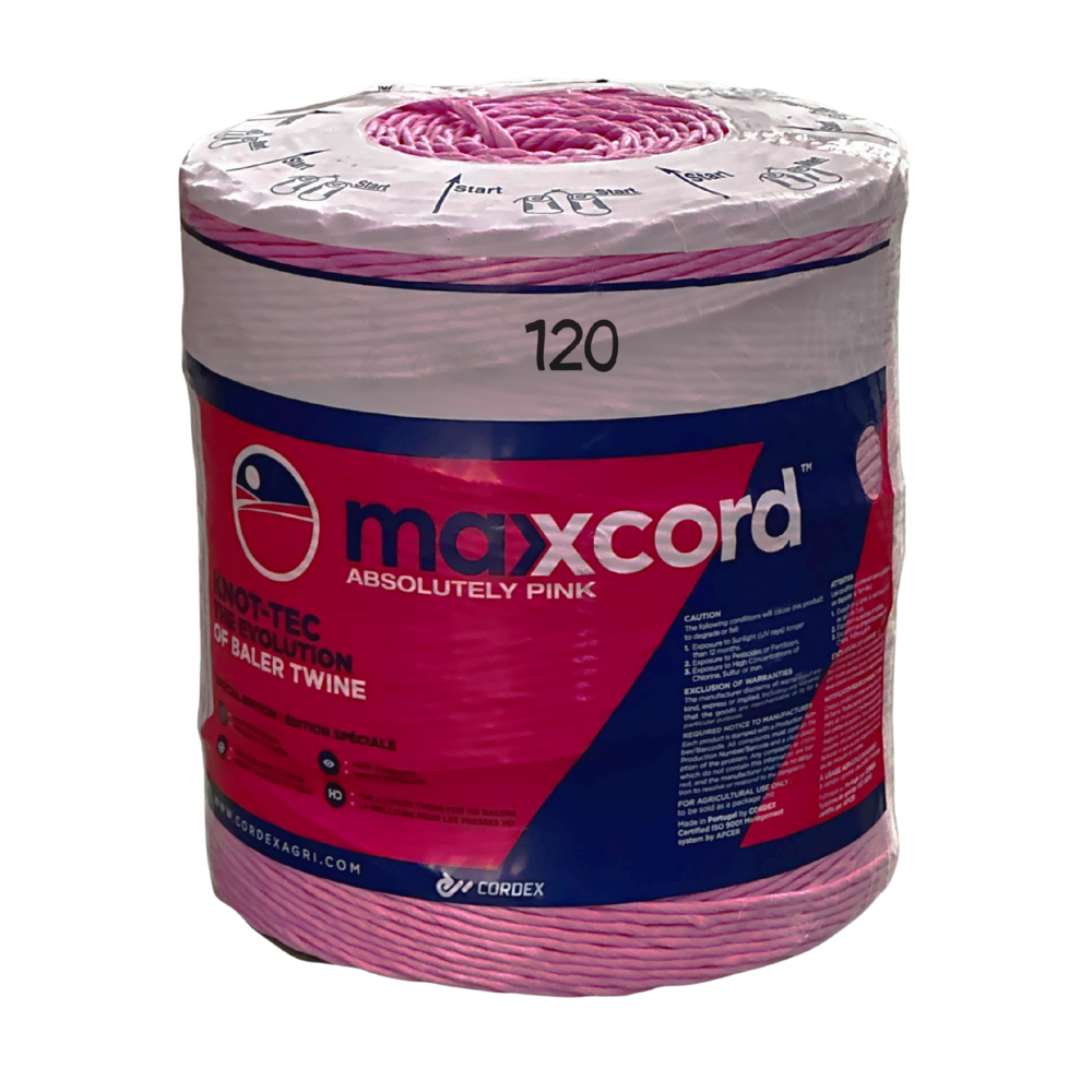 Maxxcord 120 har en knudestyrke på 250 kilo pr. meter og kommer i ruller med 2640 meter, og kan også anvendes i ældre pressere.